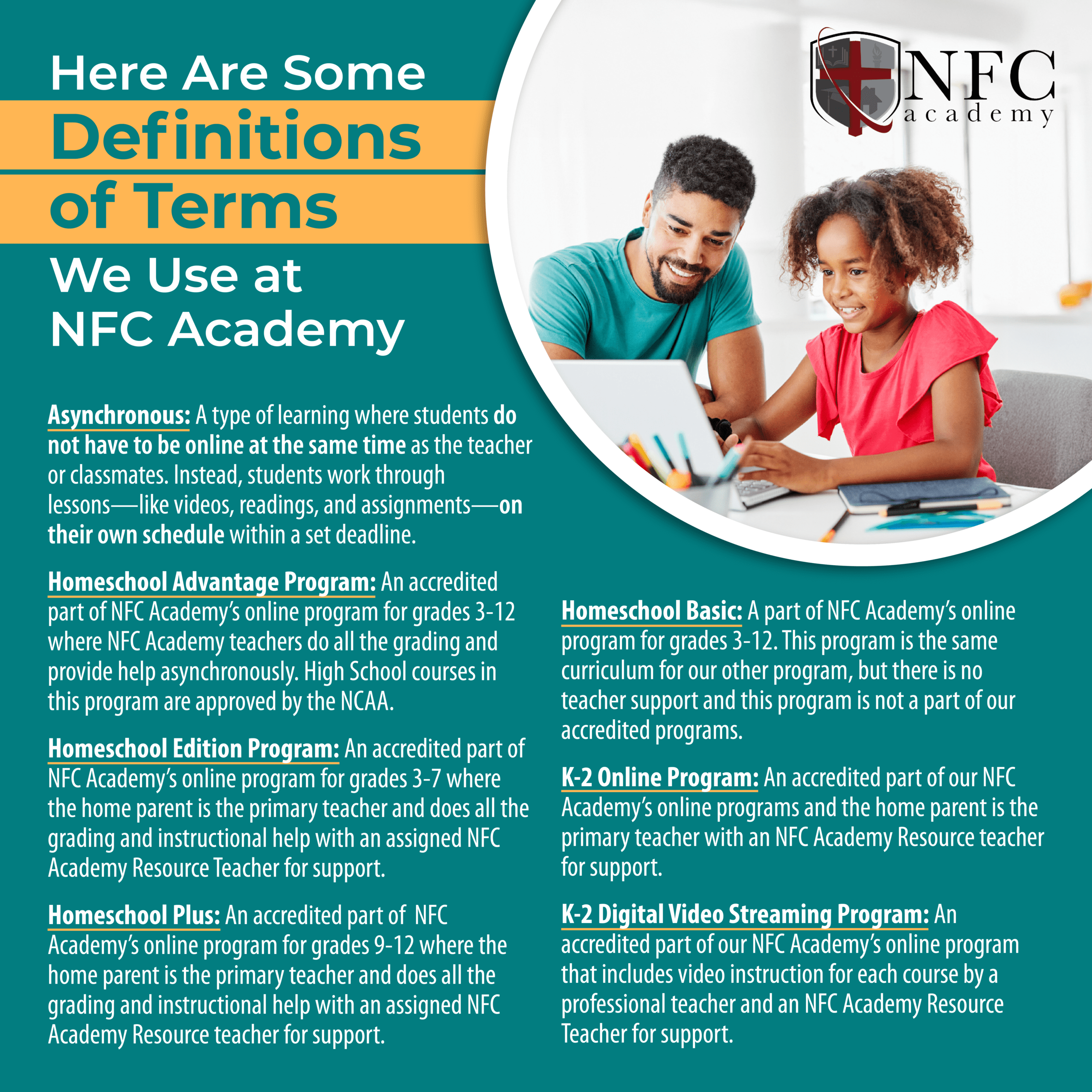 At NFC Academy, we want to be your partner in homeschooling success.